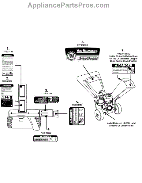 Parts for Yard Machines 24A-464H729 / 2008: Label Map 464 5 Bushel Parts