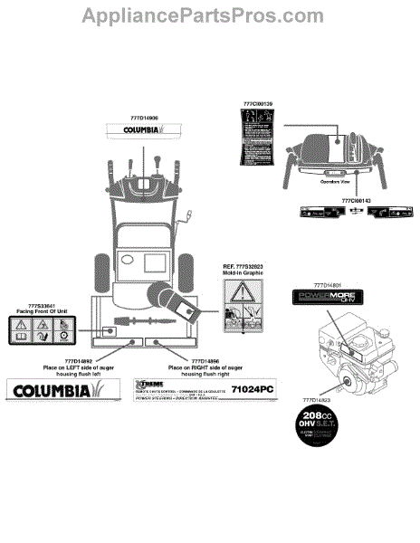 Parts for Columbia 31AM53K2897 / 2010: Label Map 71024Pc Parts