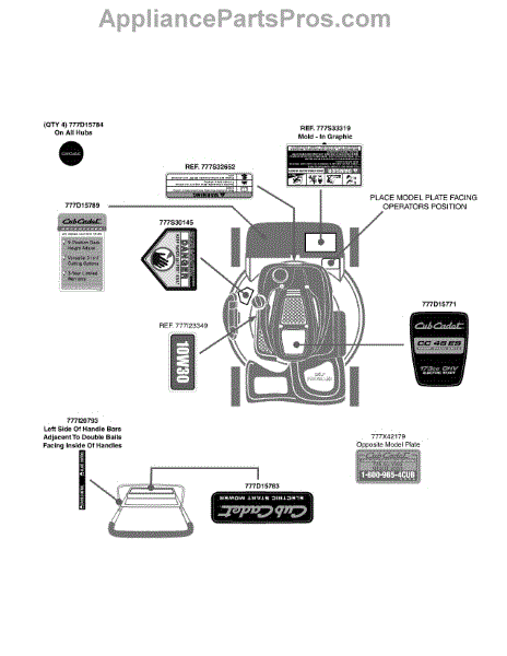 Parts for Cub Cadet Home Maintenance 12AE46JA / 2011: Label Map Cc46es Cub Engine Parts