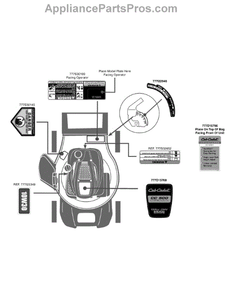 Parts for Cub Cadet Home Maintenance 11A-18M9 / 2011: Label Map Cc500 Parts