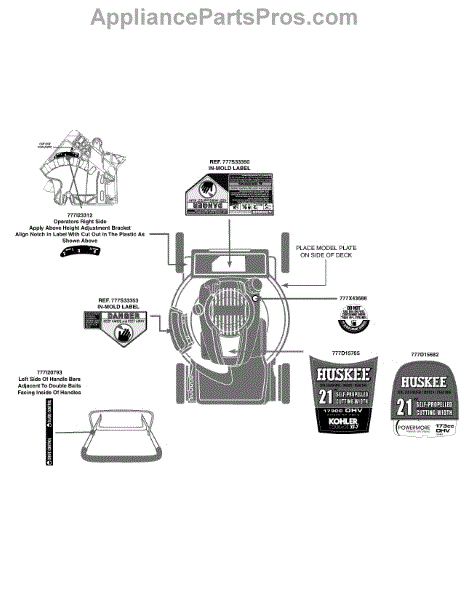 Parts for Huskee / Husky 12A-A2K7231 / 2011: Label Map Huskee Parts