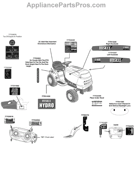 Parts for Huskee / Husky 13AX791T031 / 2010: Label Map Huskee Parts
