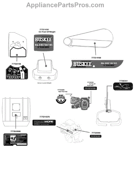 Parts for Huskee / Husky 21AA454E231 / 2010: Label Map Huskee Parts