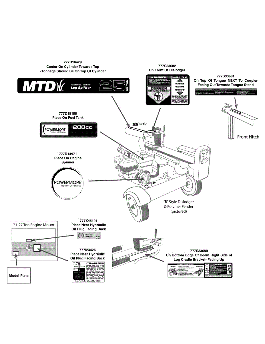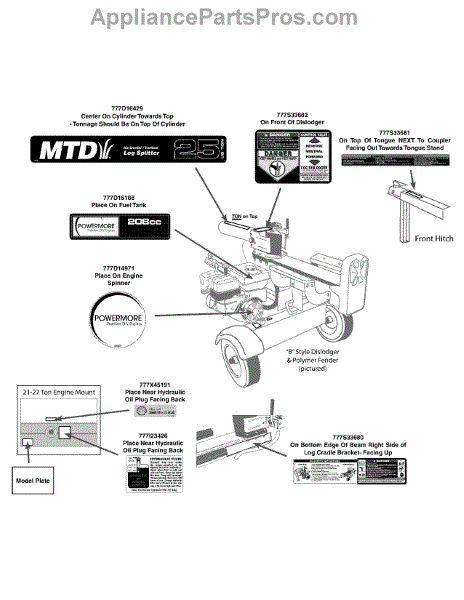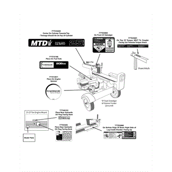 This part is a replacement label. This is a genuine OEM part made by MTD and has been sourced directly from the manufacturer. This part's intended use is to replace an unreadable or detached label in several varying models of log splitter.The purpose of these labels is to ensure that the equipment can be safely used by displaying critical information, safety warnings, or cautionary instructions. If labels become illegible, they must be replaced. It's important when working on or near an engine to make sure the equipment is powered off and completely cooled down before starting any repairs. For more accurate information on how and where to install this exact label, reference the appropriate owner's manual and specific equipment diagrams.This is an authentic OEM replacement part made of high-quality materials. This part can be used with log splitters that have been manufactured by MTD. Sold individually.