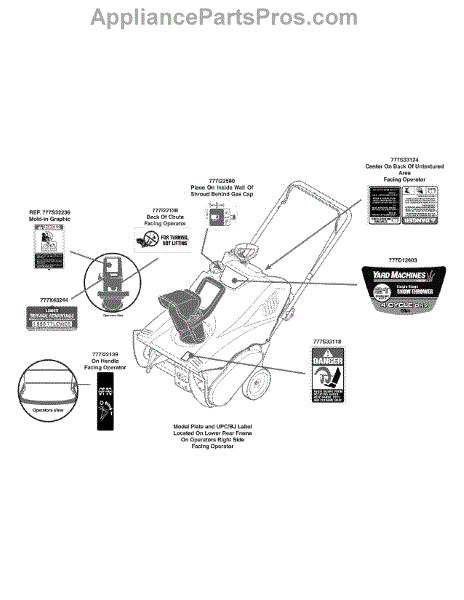 Parts for Yard Machines 31A-2M1A762 / 2008: Label Map Lowes Parts