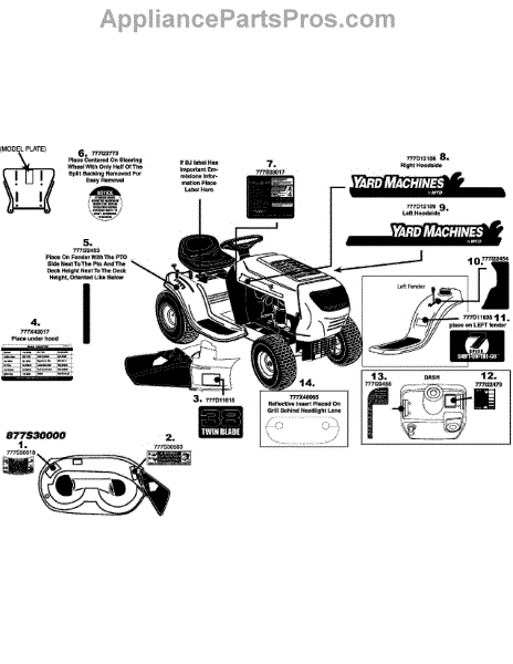 Parts for Yard Machines 13AM772F000 / 2008: Label Map M772f Parts