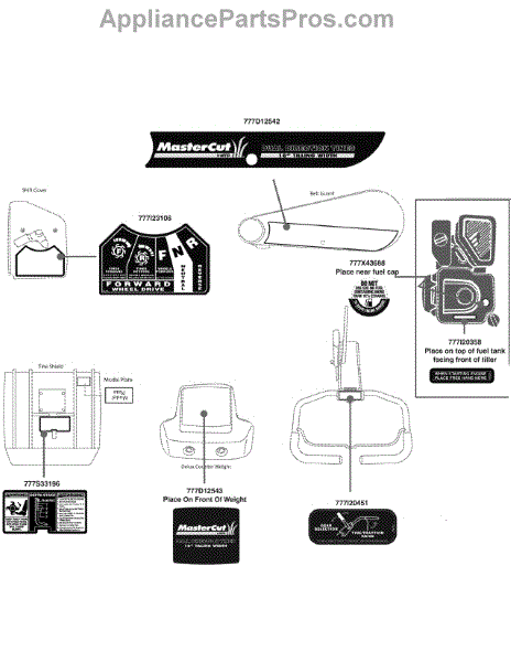 Parts for Mastercut 21AB452A059 / 2009: Label Map Mastercut Parts