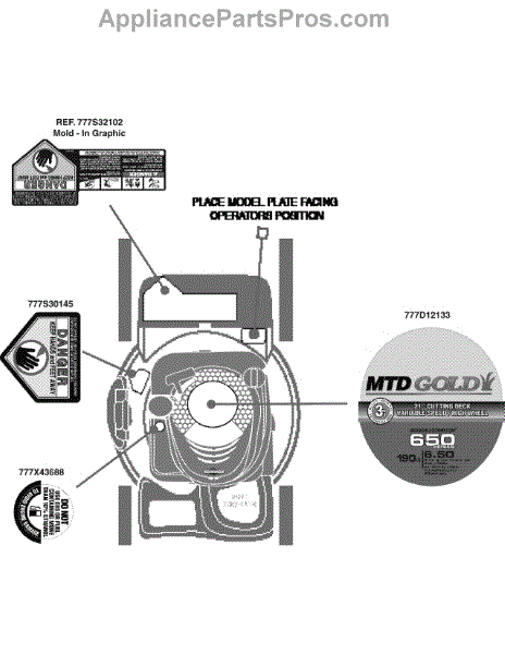 Parts for Mtd Gold 12AV569S204 / 2009: Label Map Mtd Gold Parts
