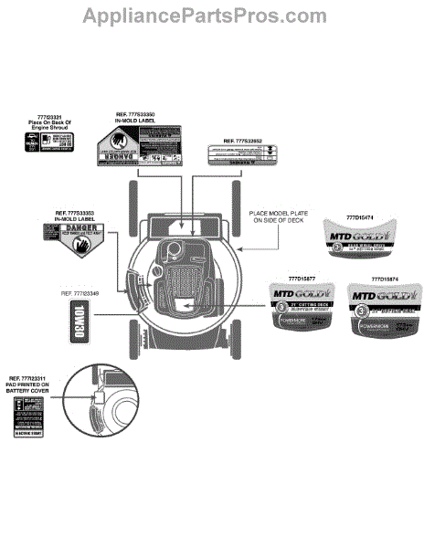 Parts for Mtd Gold 12AVB2M7004 / 2011: Label Map Mtd Gold Parts