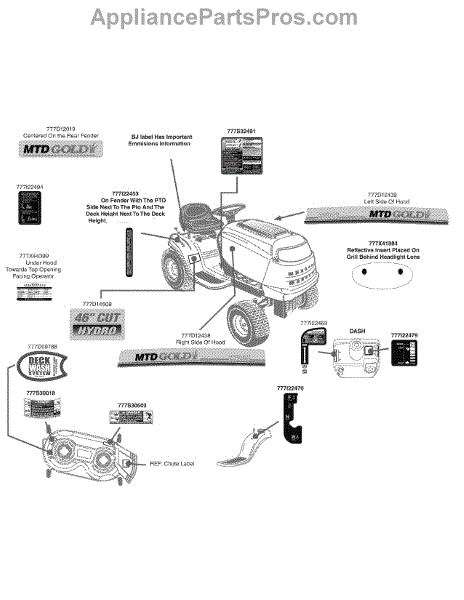 Parts for Mtd Gold 13AL795T004 / 2010: Label Map Mtd Gold 46 Inch Parts
