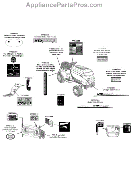 Parts for Mtd Gold 13AX795S004 / 2011: Label Map Mtd Gold 42-Inch Parts