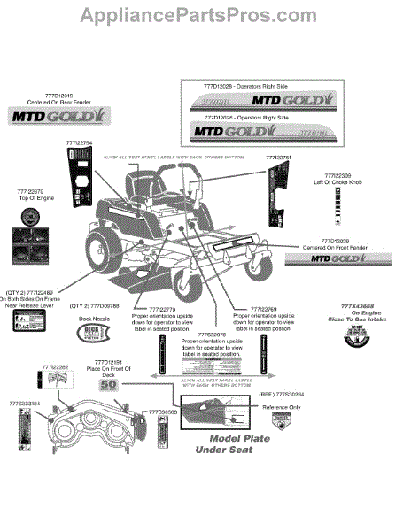 Parts for Mtd Gold 17AF2ACP004 / 2010: Label Map Mtd Gold 50-Inch Parts