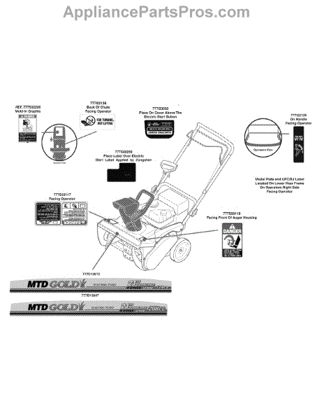 Parts for Mtd Gold 31AM2N1B704 / 2008: Label Map Mtd Gold Parts