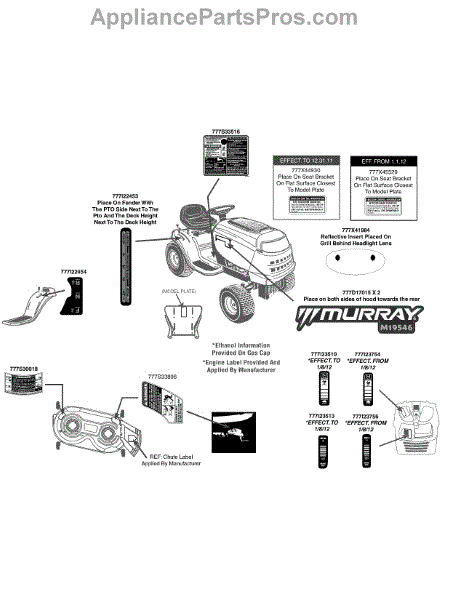 Parts for Murray 13AO785T058 / 2012: Label Map Murray Parts