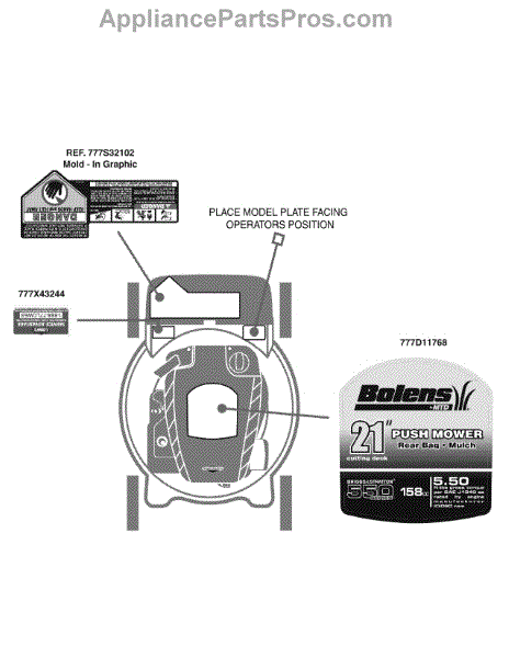 Parts for Bolens 11A-414A065 / 2009: Label Map Parts