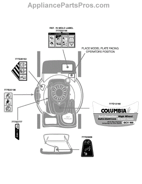 Parts for Columbia 12AV569Q597 / 2009: Label Map Parts