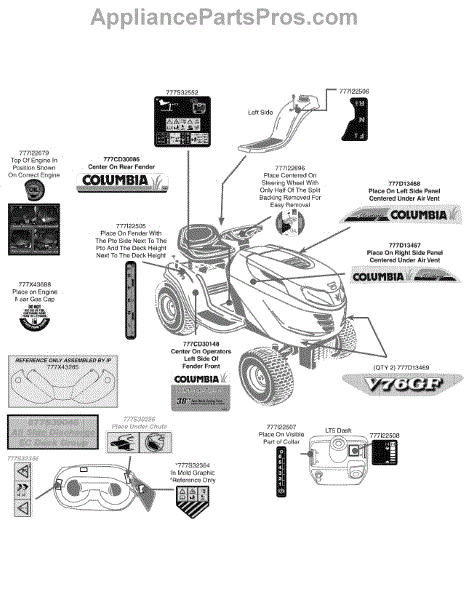 Parts for Columbia 13AV76GF897 / 2009: Label Map Parts