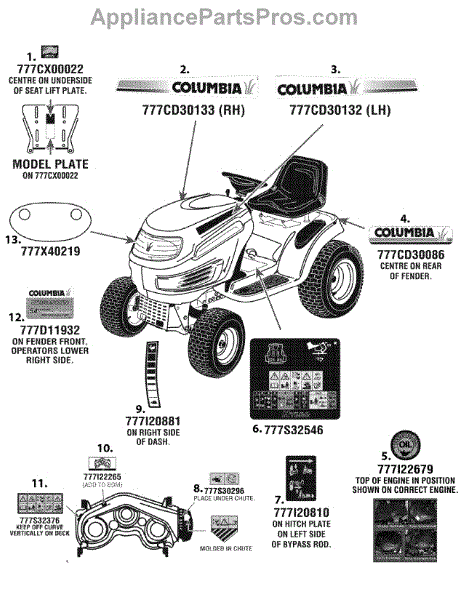 Parts for Columbia 14AQ816K597 / 2008: Label Map Parts