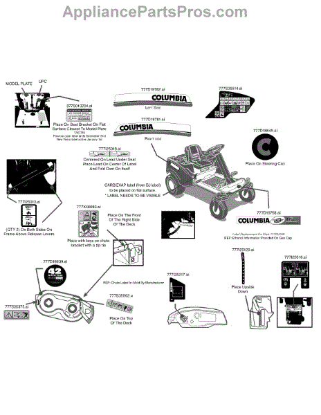 Parts for Columbia 17ARCBDS897 / 2015: Label Map Parts