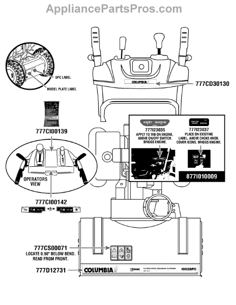 Parts for Columbia 31AH6WK3597 / 2008: Label Map Parts