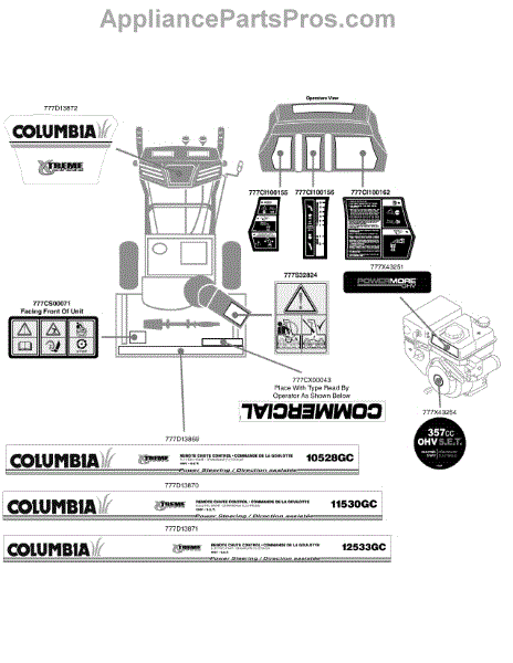Parts for Columbia 31AH9575897 / 2009: Label Map Parts