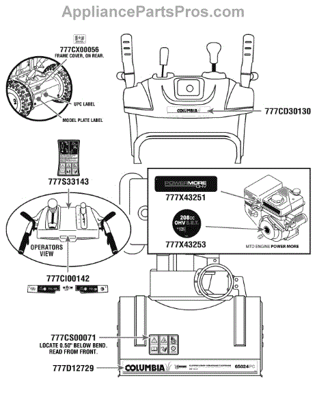 Parts for Columbia 31AM63K2597 / 2008: Label Map Parts