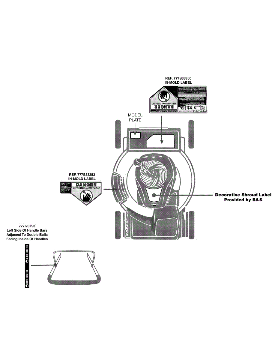 Handle label for self-propelled walk-behind mowers. Replace this decal if it's faded, peeling, worn, or missing to restore clear operation instructions.