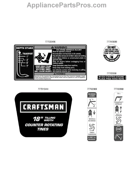 Parts for Craftsman 21AA404D299 / 2011: Label Map Parts