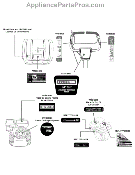 Parts for Craftsman 21AB40M1099 / 2010: Label Map Parts