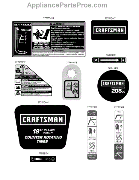 Parts for Craftsman 21AB40M1099 / 2011: Label Map Parts