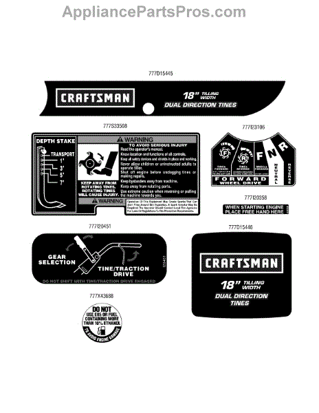 Parts for Craftsman 21AB454E299 / 2011: Label Map Parts