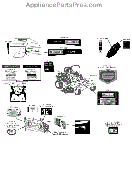 Parts for Craftsman 247.25001 / 2012: Label Map Parts