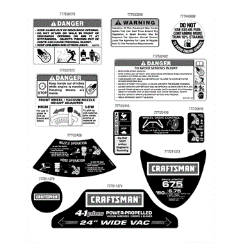 Parts for Craftsman 247.77013 / 2011: Label Map Parts