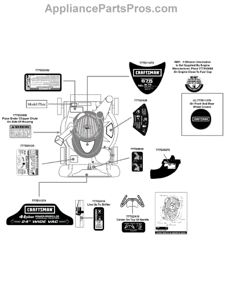 Parts for Craftsman 247.770130 / 2009: Label Map Parts
