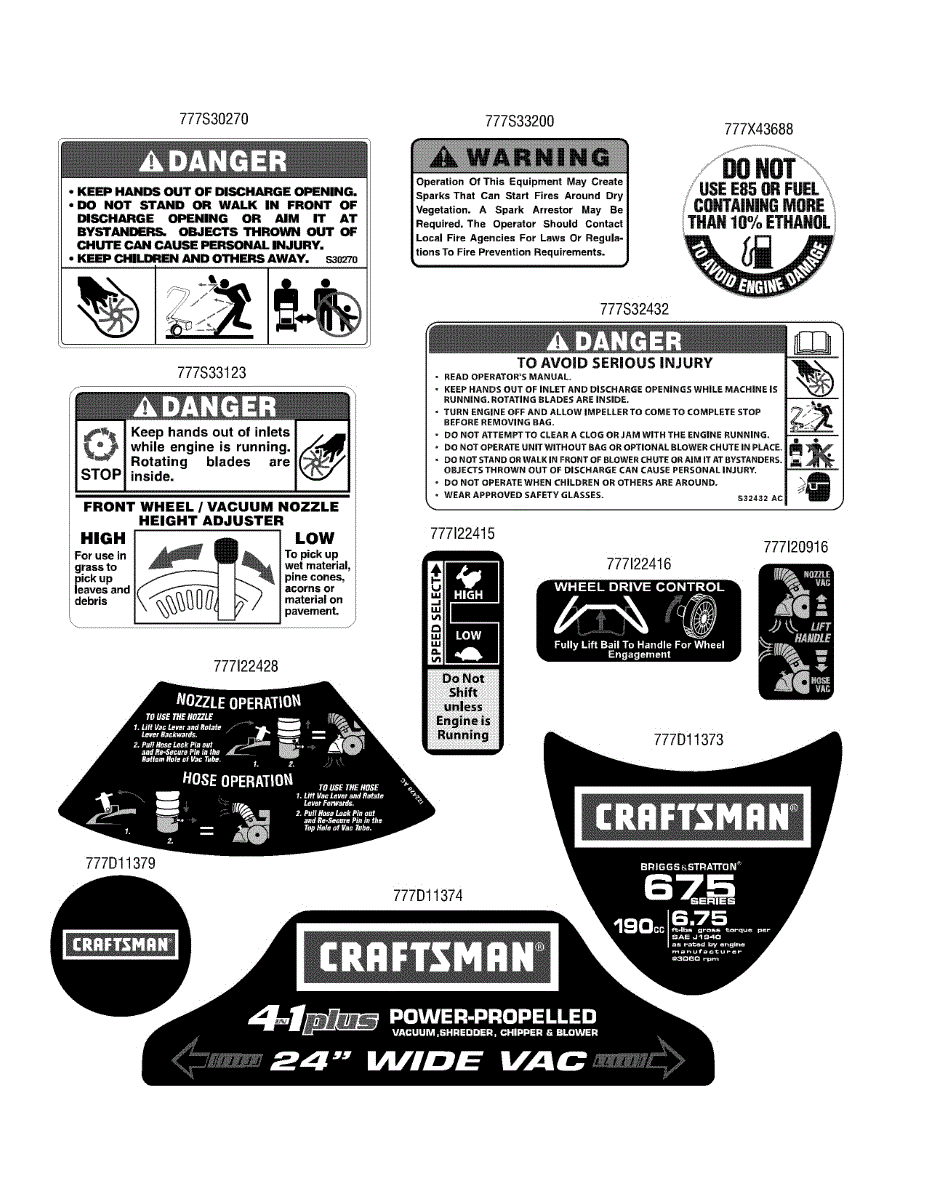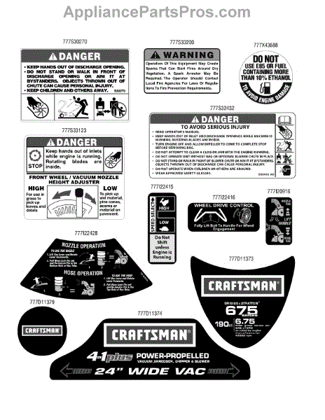 Parts for Craftsman 247.77366 / 2010: Label Map Parts
