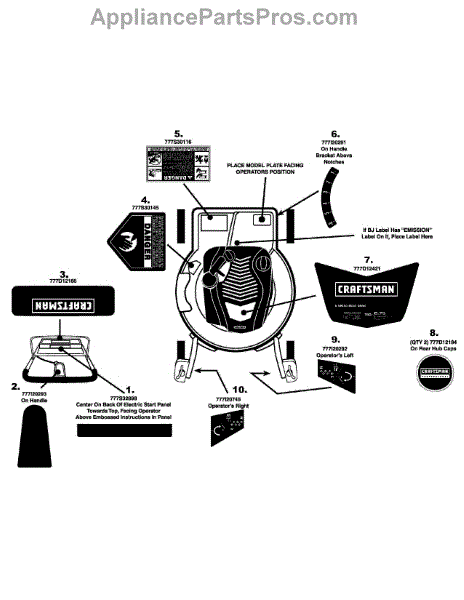 Parts for Craftsman 247.887210 / 2008: Label Map Parts