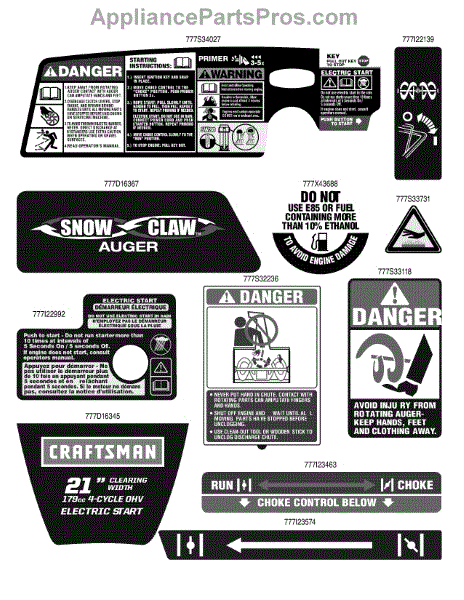 Parts for Craftsman 247.88782 / 2011: Label Map Parts
