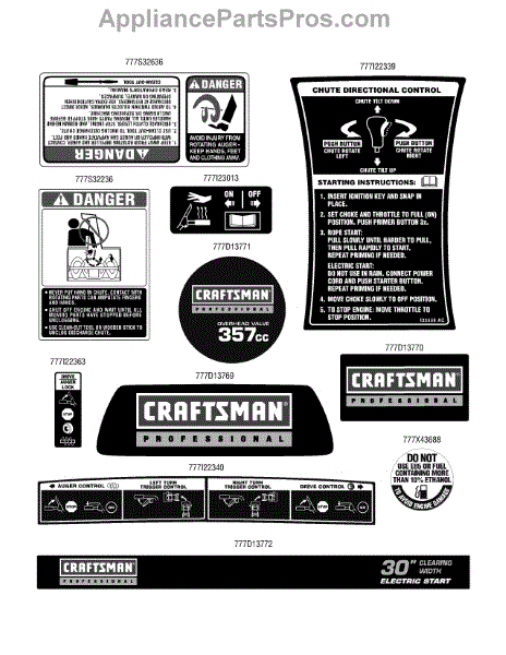 Parts for Craftsman 247.88830 / 2010: Label Map Parts