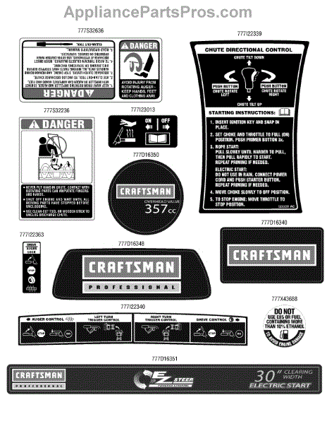 Parts for Craftsman 247.888301 / 2011: Label Map Parts