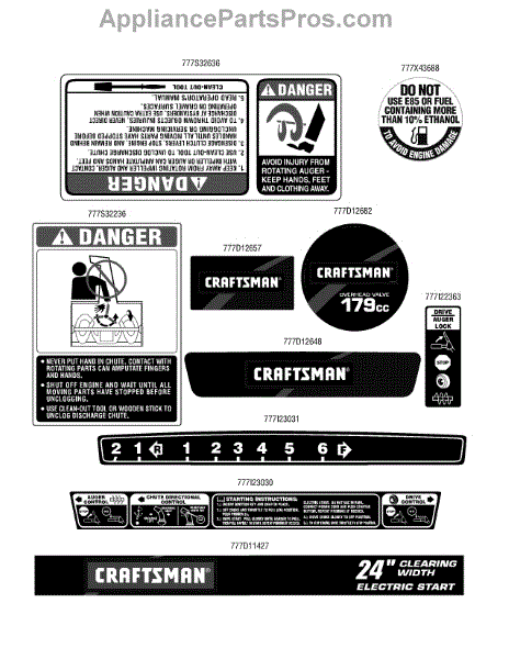 Parts for Craftsman 247.889571 / 2010: Label Map Parts