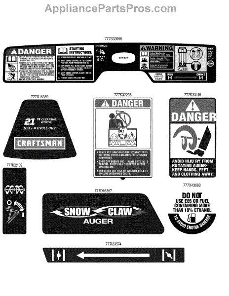 Parts for Craftsman 31A-2M5E799 / 2011: Label Map Parts