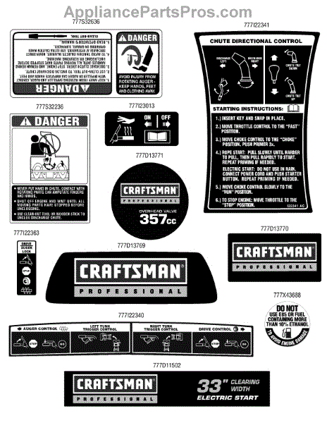 Parts for Craftsman 31AH95SI799 / 2011: Label Map Parts