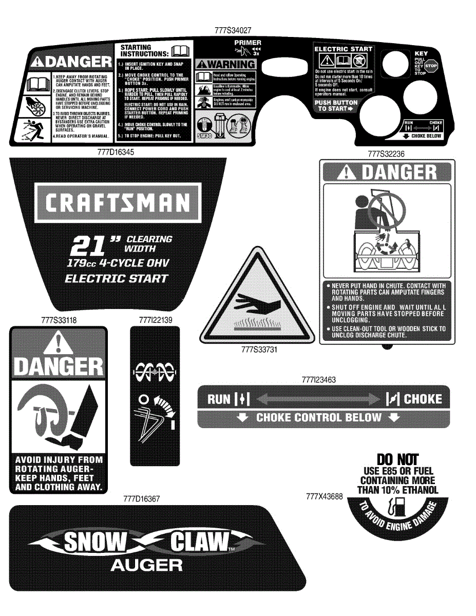 Parts for Craftsman 31AS2S5D799 / 2011: Label Map Parts