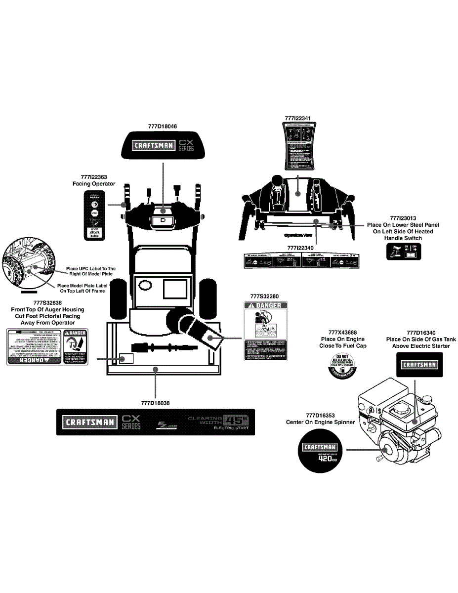 Control label for snowblower auger, drive, and steering mechanisms. Replaces faded, peeling, or missing instruction labels on control panel.