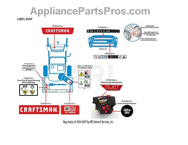 Parts for Craftsman CMGSB24208: Label Map Parts