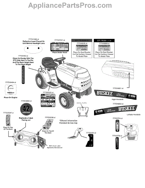 Parts for Huskee / Husky 13W2775S231 / 2014: Label Map Parts