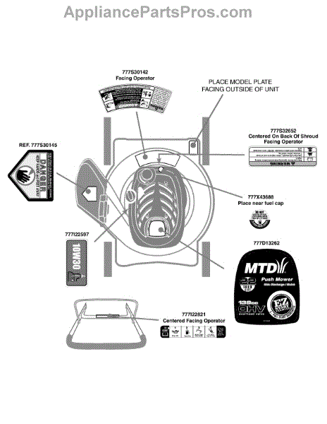 Parts for Mtd 11A-50M9006 / 2009: Label Map Parts