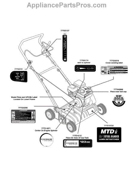 Parts for Mtd 16CG5AMQ006 / 2011: Label Map Parts