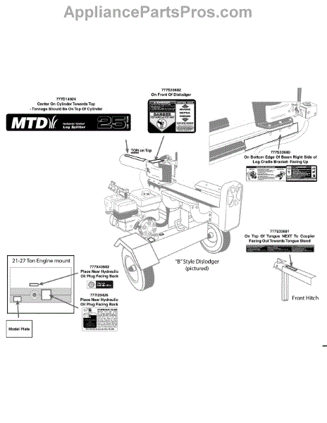 This part is a replacement label. This is a genuine OEM part made by MTD and has been sourced directly from the manufacturer. It can be used to replace a worn or lost label on a variety of different log splitter models. This particular label is for Shell Tellus S log splitter models.The label lists the make and model of the equipment. Labels can be lost, torn, worn, or faded overtime and may need to be replaced if desired. When working on or near an engine, ensure the equipment is powered off and completely cooled down before starting any repairs. For more accurate information on how and where to install this label, the appropriate owner's manual and equipment diagrams should be referenced. No tools are required to install this part.As an authentic replacement part, this label is suitable for use on several different Shell Tellus S models of log splitters manufactured by MTD. Please note that this is a genuine part made of high-quality, durable materials and is sold individually.