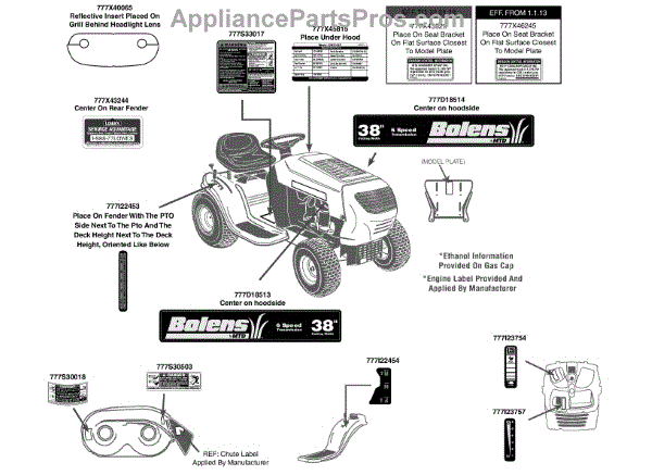 Parts for Mtd Gold 13A1762F265 / 2013: Label Map Parts